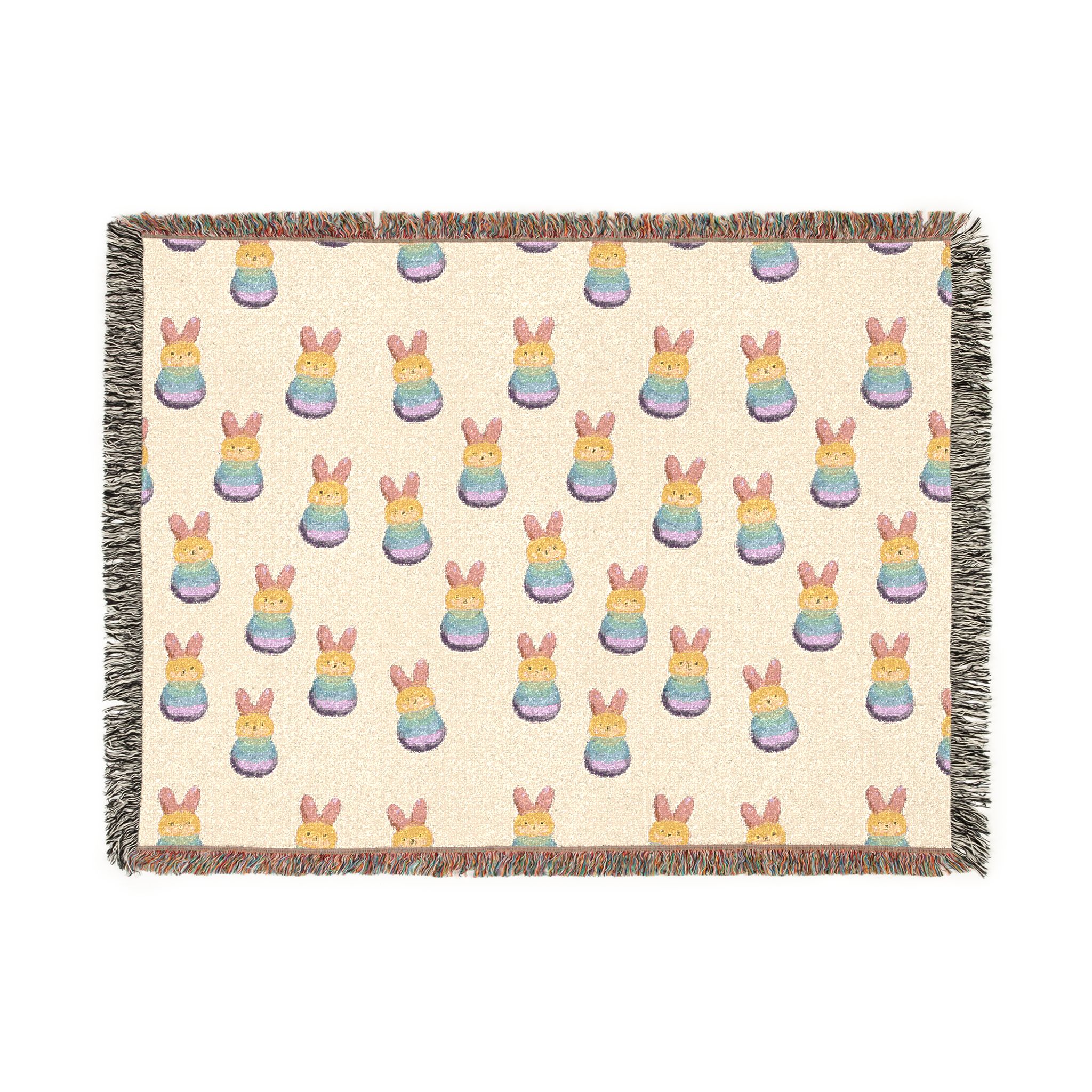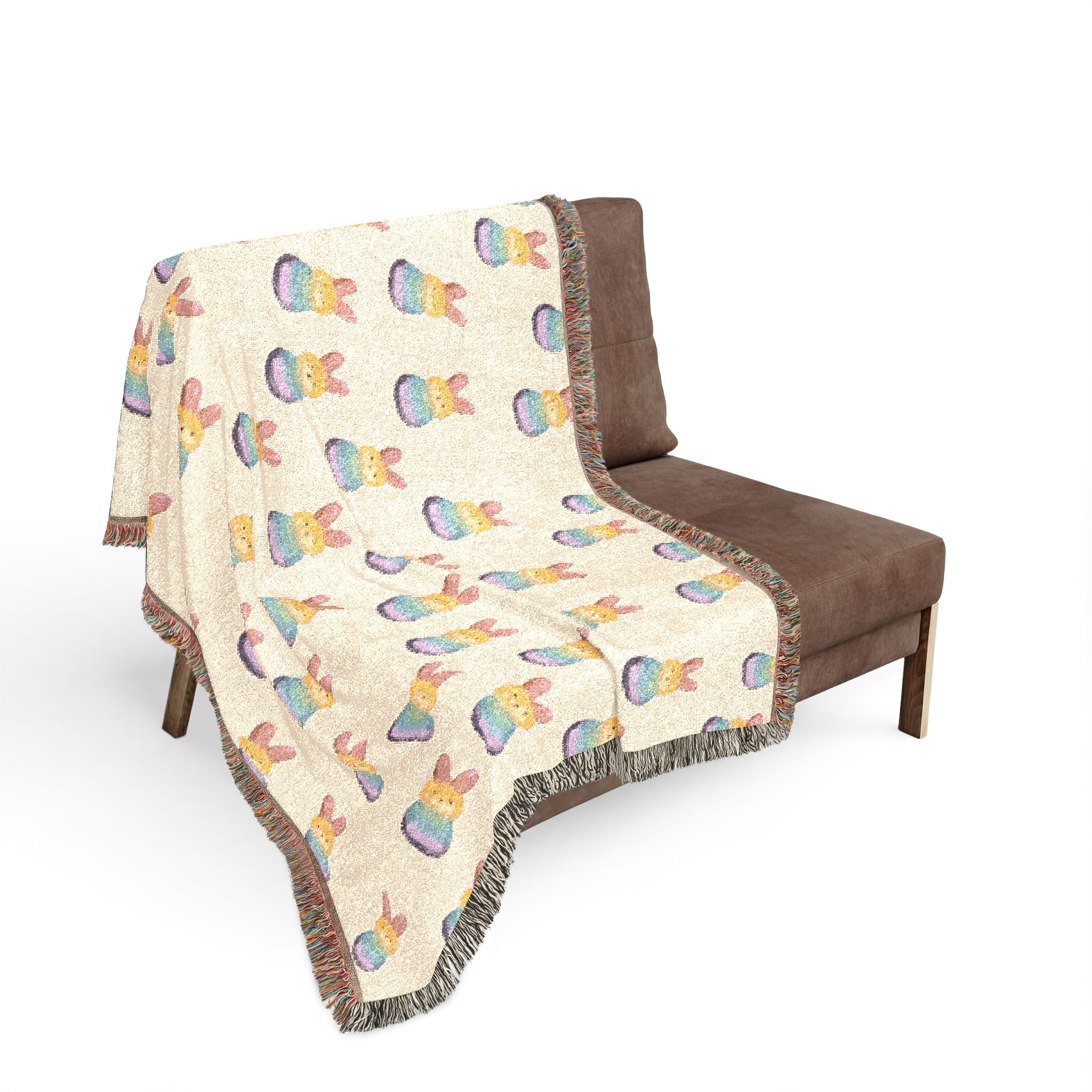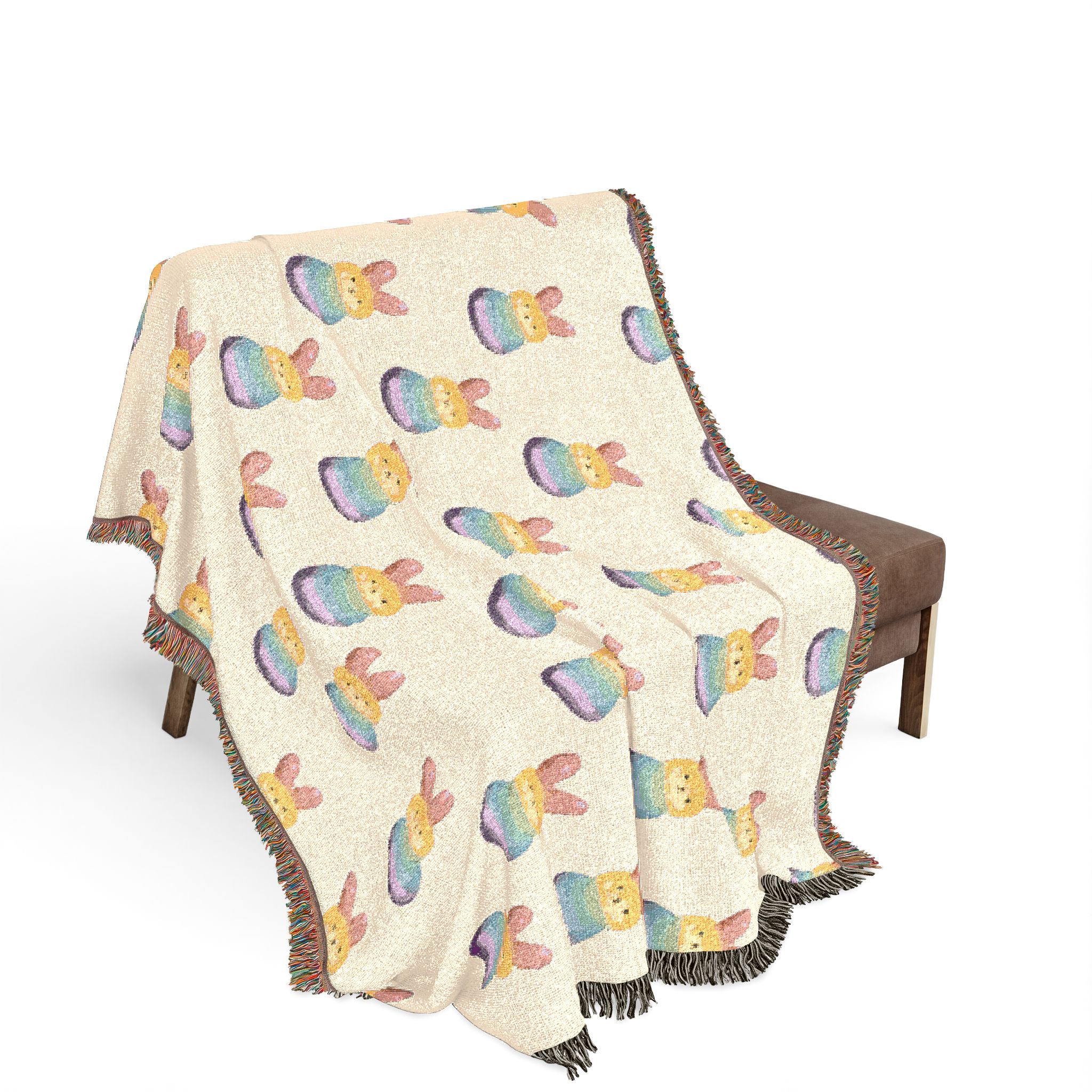 Wrap yourself in a hand-woven story. This cotton woven blanket pairs a soft, breathable weave with lively, colorful fringed edges and a playful repeating motif—balanced and cozy whether draped over a sofa or spread out for a quiet floor picnic. Choose the Artwork variant if your design uses bold, separated colors for crisp, graphic clarity. Choose the Photo variant when you want subtle gradients and photographic detail to come through more naturally. The woven texture gives each piece a tactile, lived-in feel; small variations and the slight difference between mockup and finished throw are part of its handmade charm. Available in three sizes, it layers easily with cushions and throws and makes rooms feel warmer, more personal, and a little more joyful.