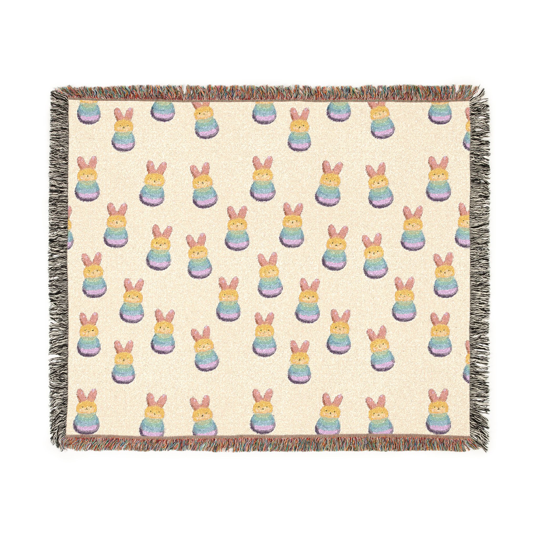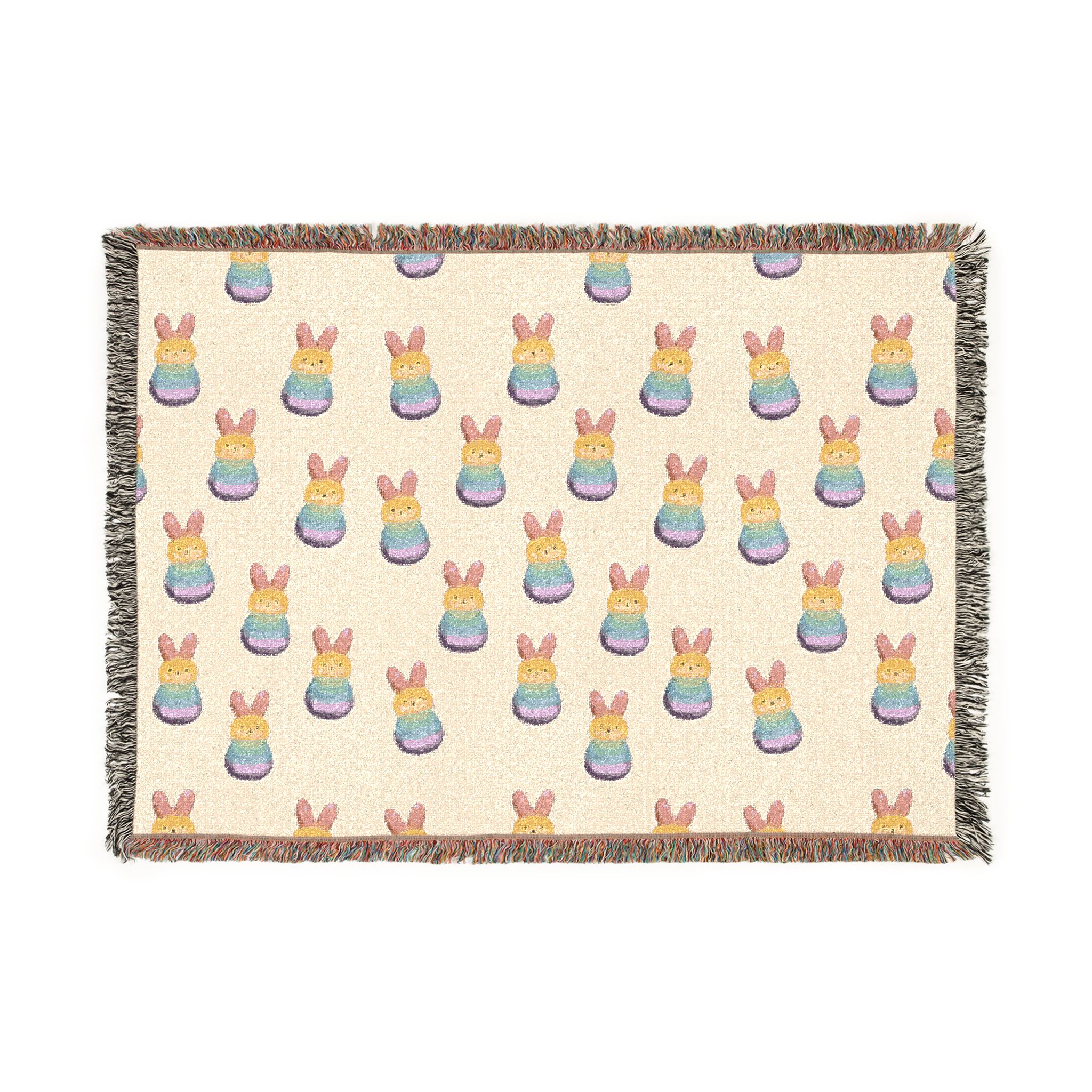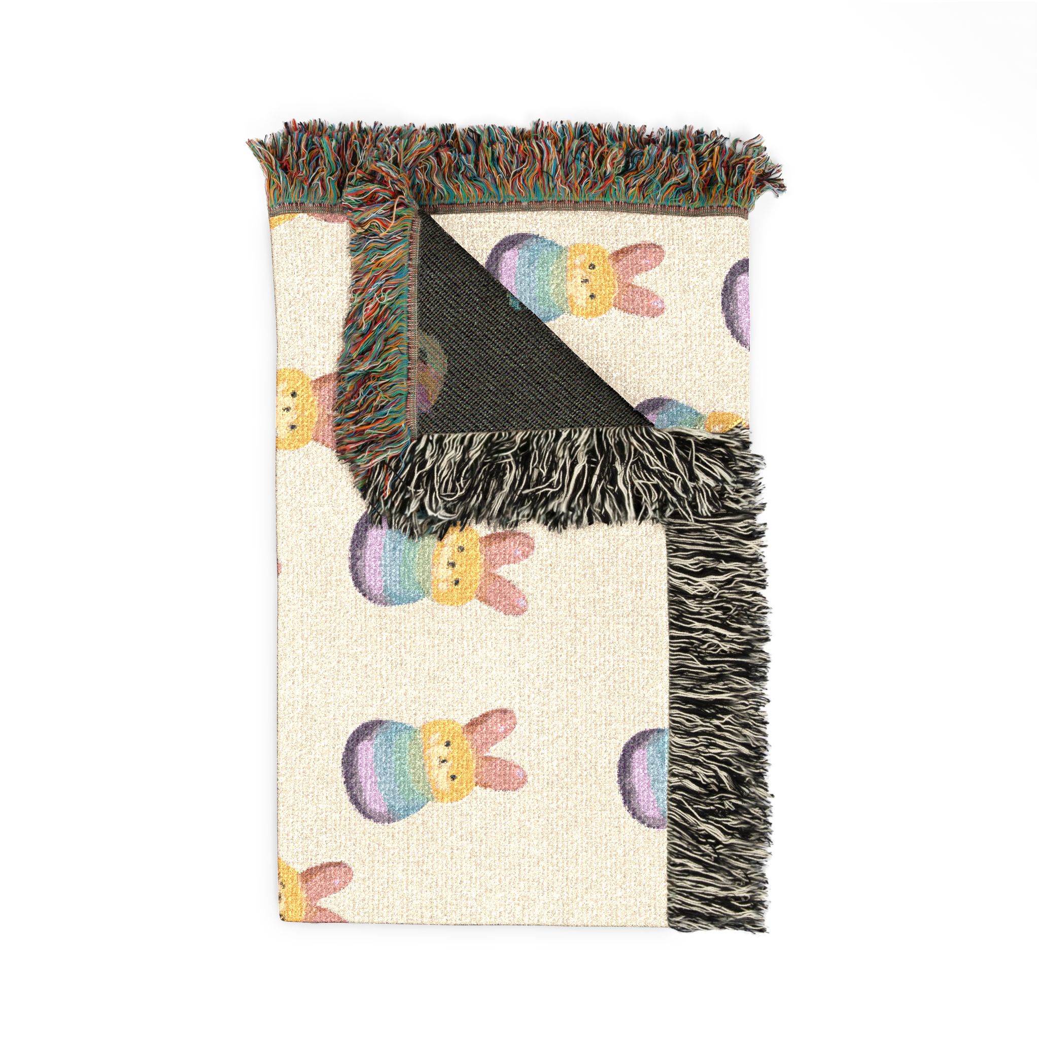 Wrap yourself in a hand-woven story. This cotton woven blanket pairs a soft, breathable weave with lively, colorful fringed edges and a playful repeating motif—balanced and cozy whether draped over a sofa or spread out for a quiet floor picnic. Choose the Artwork variant if your design uses bold, separated colors for crisp, graphic clarity. Choose the Photo variant when you want subtle gradients and photographic detail to come through more naturally. The woven texture gives each piece a tactile, lived-in feel; small variations and the slight difference between mockup and finished throw are part of its handmade charm. Available in three sizes, it layers easily with cushions and throws and makes rooms feel warmer, more personal, and a little more joyful.